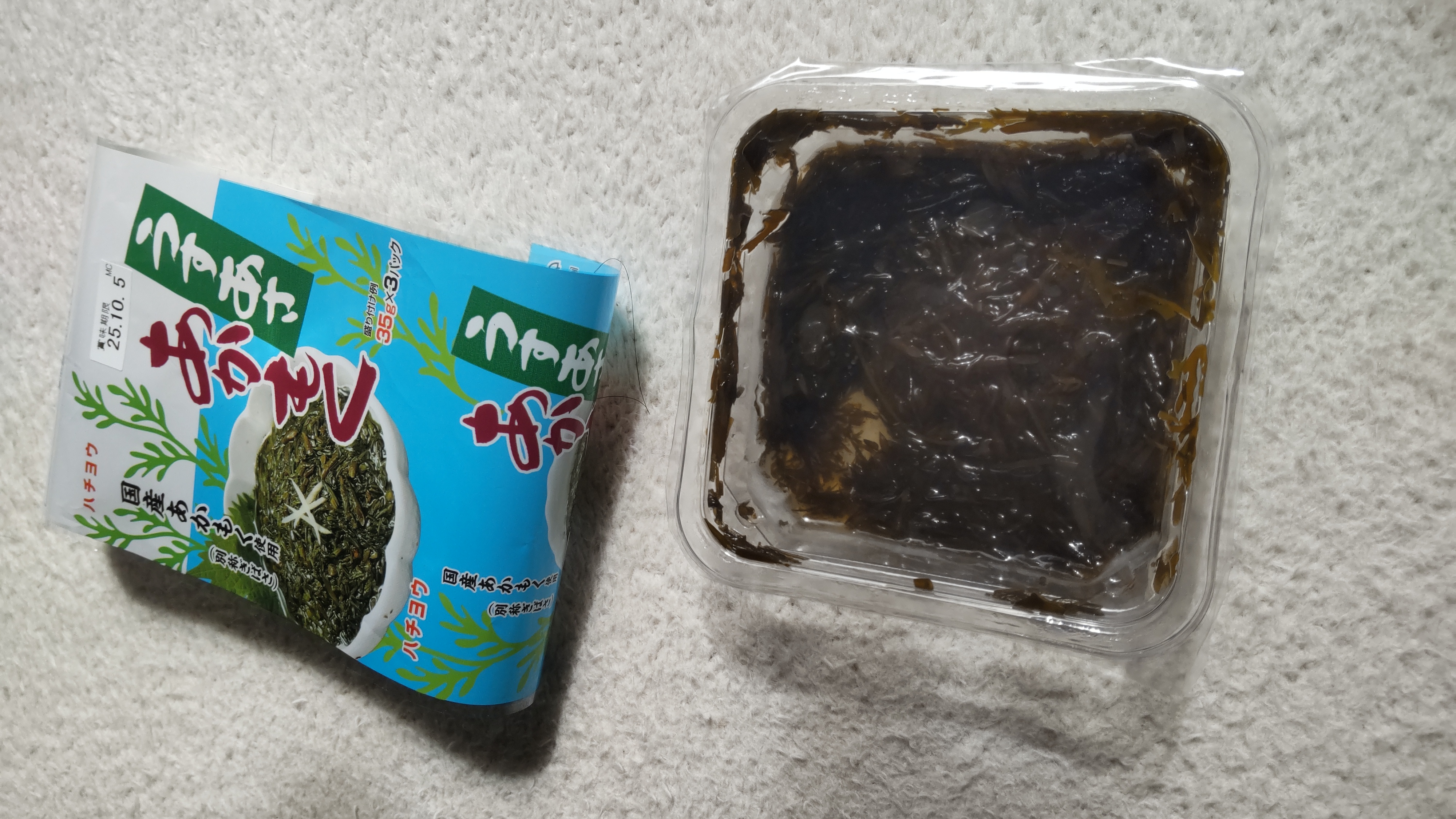 夕食はホルモンみたいのとかあかもくのめかぶ